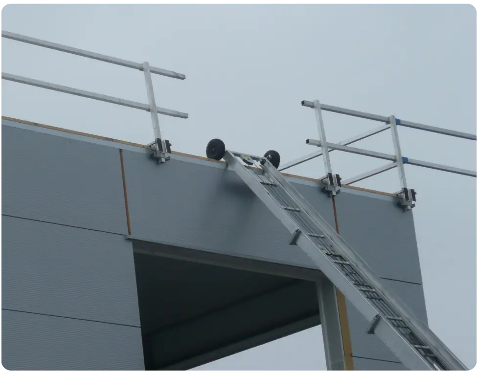 Ons team bouwt de dakrandbeveiliging snel en netjes op volgens de afgesproken methode. Het dakvlak blijft volledig vrij van obstakels, zodat jouw dakdekkers veilig, overzichtelijk en zonder hinder kunnen werken.
